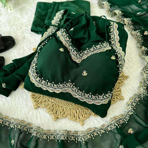 Green Embroidered Anarkali Gown with Flared Silhouette – Festive & Party Wear