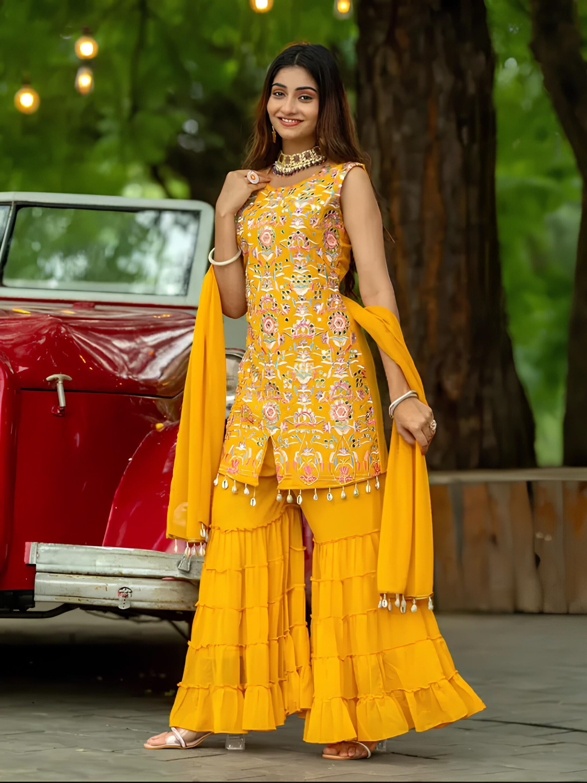 Dupatta Fabric*: Faux Georgette Embroidery Work With Mirror Worck